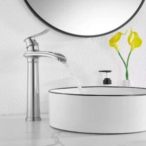 Waterfall Tall Spout Single Hole Single Handle Vessel Sink Faucet in Brushed Nickel
